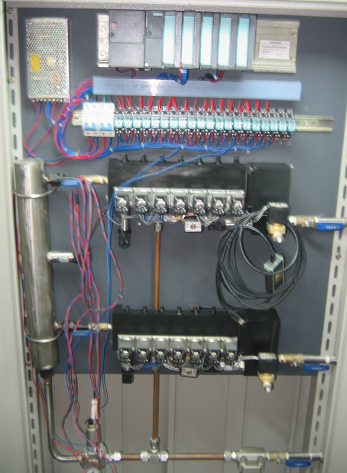 钢包底吹氩控制系统是由一套主柜、一套PLC和人机界面(触摸屏或工控机)组成。主柜含有过滤装置、稳压系统、叠加阀岛、旁吹系统等。