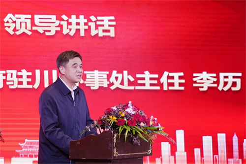 重庆市人民政府驻四川办事处李历主任首先对商会新当选的领导班子表示祝贺,同时对商会在服务会员、凝聚力量,为陕渝两地交流作出的贡献给予高度赞扬,希望新当选的领导班子继续坚持党建引领,把准发展方向,发挥好桥梁纽带作用,促进陕渝交流,抓实自身建设,提升服务能力,践行社会责任,彰显企业担当。办事处将持续做好服务,助推两地经济社会高质量发展。