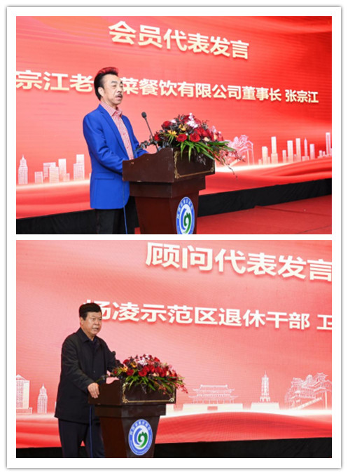 会员代表西安宗江老川菜餐饮有限公司董事长张宗江、顾问团代表杨凌示范区退休干部卫建国发言,表示积极建言献策、助力商会发展。