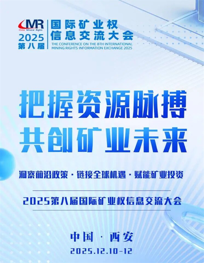 陕商讯:在全球矿业战略转型、机遇与挑战并存的关键时期,由天宙集团主办的“第八届国际矿业权信息交流大会”定于2025年12月10日至12日在西安曲江惠宾苑隆重召开。